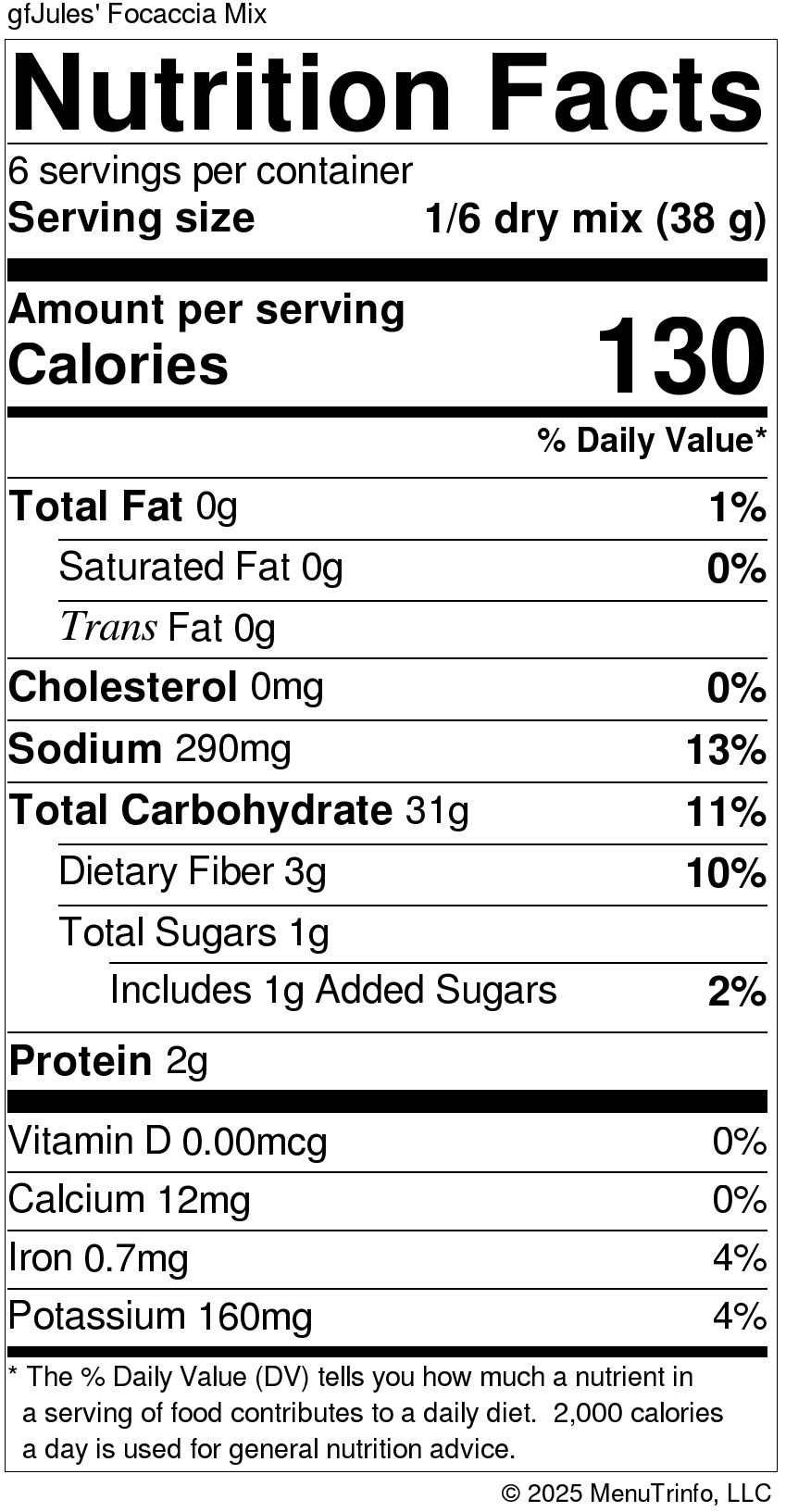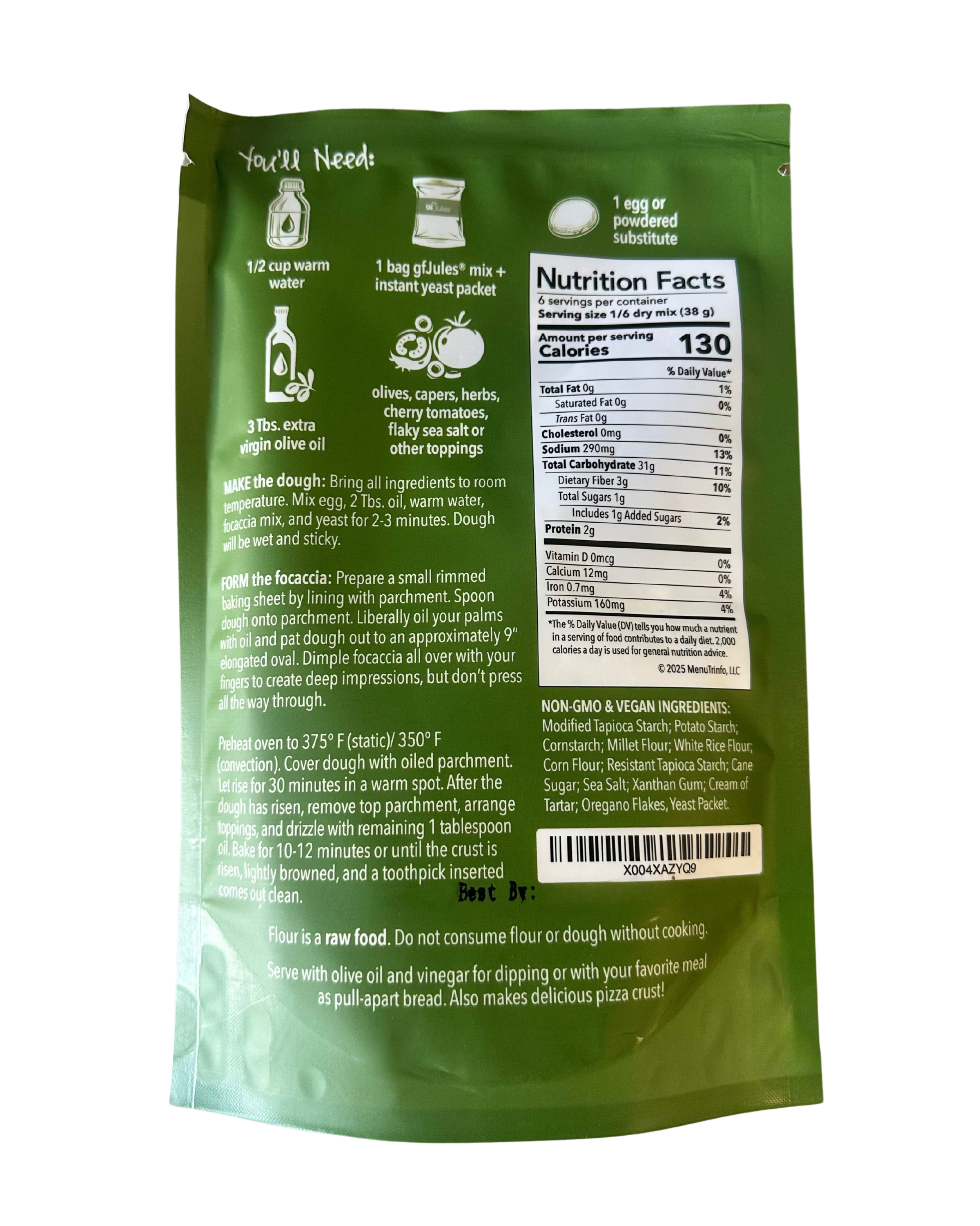 Modified Tapioca Starch; Potato Starch; Cornstarch; Millet Flour; White Rice Flour; Corn Flour; Resistant Tapioca Starch; Cane Sugar; Sea Salt; Xanthan Gum; Cream of Tartar; Oregano Flakes; Yeast Packet.
